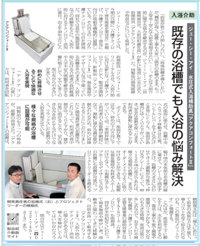 【シルバー産業新聞】アクアコンフォートⅡ記事掲載